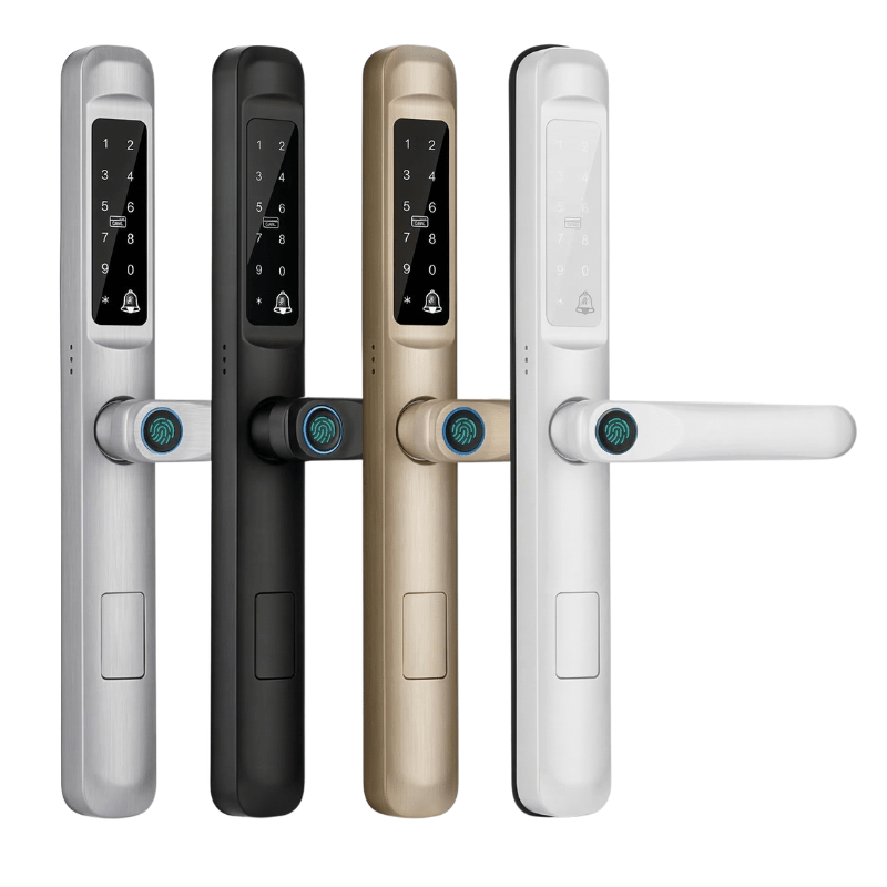 Upgrade your entryway with the Smart Door Lock Slim, featuring multiple keyless entry methods including instant fingerprint, passcode, and app control. Its sleek, minimalist design is crafted to fit seamlessly on a variety of doors, from wood to glass.